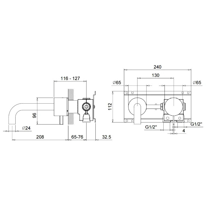 Смеситель для раковины Fantini AF/21 27 02 A613B Хром Fantini AF/21 Смеситель для раковины, встраиваемый, на 2 отв, без донного клапана, излив 208мм (наружняя часть), цвет: хром