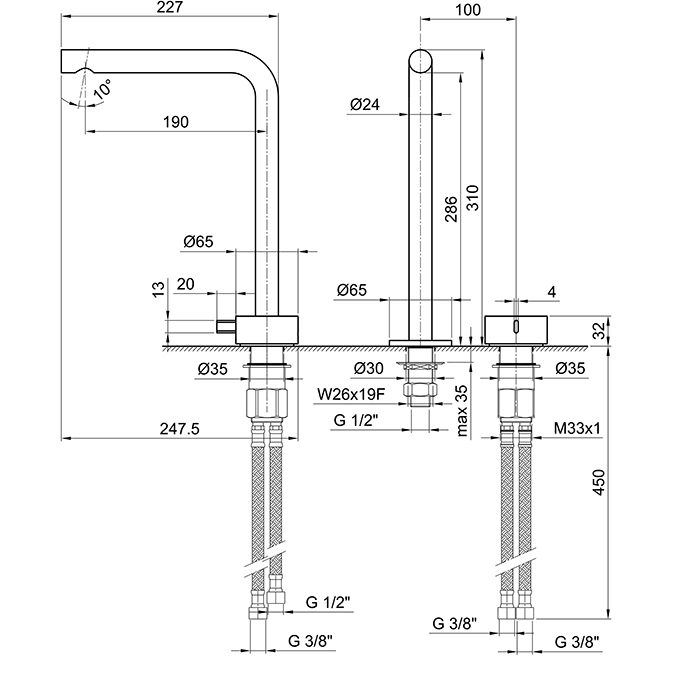 Смеситель для раковины Fantini AF/21 27 93 A107WF Матовая сталь Fantini AF/21 Смеситель для раковины, 2 отв., без донного клапана, излив 190мм, цвет: матовая натуральная сталь