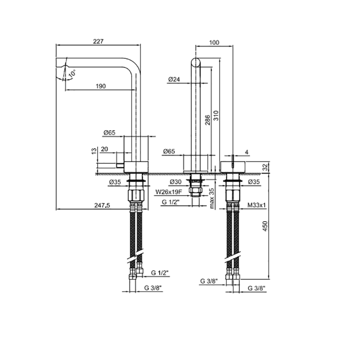 Смеситель для раковины Fantini AF/21 27 P5 A107WF Gun metal Fantini AF/21 Смеситель для раковины, 2 отв., без донного клапана, излив 190мм, цвет: Matt Gun Metal PVD