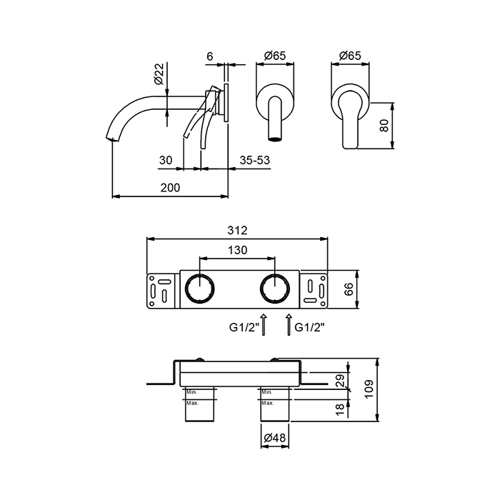 Смеситель для раковины Fantini AL/23 26 02 B813B Хром Fantini AL/23 Смеситель для раковины, встраиваемый, на 2 отв, без донного клапана, излив 200мм (наружняя часть), цвет: хром