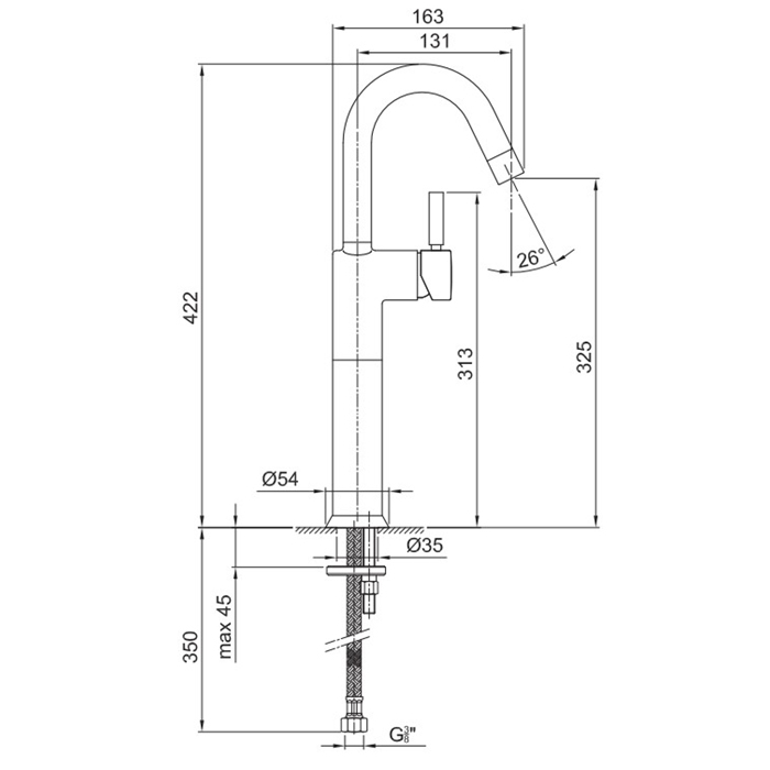 Смеситель для раковины Fantini Cafe 42 02 1806WF Хром Fantini Cafe Смеситель для раковины, 1 отв., без донного клапана, излив 130мм, цвет: хром