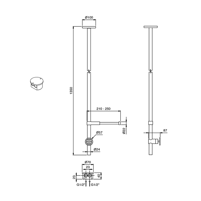 Смеситель для раковины Fantini Fontane Bianche 47 P5 P404B Gun metal Fantini Fontane Bianche Смеситель для раковины, потолочный, без донного клапана, излив 1350мм, (наружняя часть), цвет: Matt Gun Metal PVD