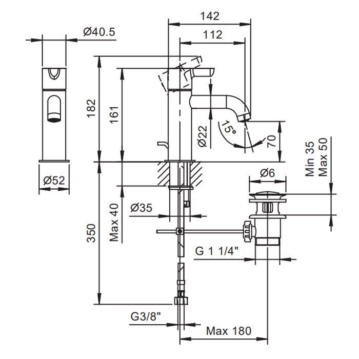 Смеситель для раковины Fantini Icona Classic 53 02 R404F Хром Fantini Icona Classic Смеситель для раковины, 1 отв., с донным клапаном, излив 110мм, цвет: хром
