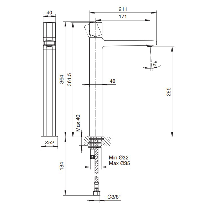 Смеситель для раковины Fantini Lame 24 02 M006WF Хром Fantini Lame Смеситель для раковины, 1 отв., без донного клапана, излив 170мм, цвет: хром