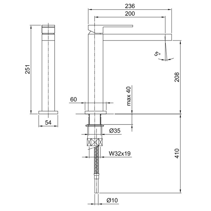 Смеситель для раковины Fantini Mare 51 02 1051F Хром Fantini Mare Смеситель для раковины, 1 отв., без донного клапана, излив 200мм, цвет: хром