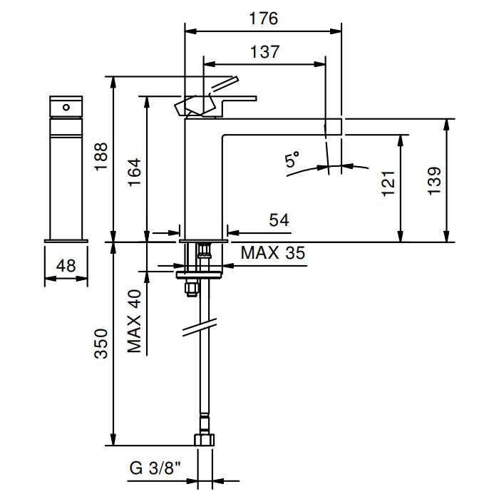 Смеситель для раковины Fantini Mare 51 02 V004WF Хром Fantini Mare Смеситель для раковины, 1 отв., без донного клапана, излив 140мм, цвет: хром