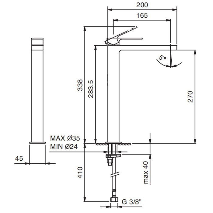 Смеситель для раковины Fantini Mint 34 02 F006WF Хром Fantini Mint Смеситель для раковины, 1 отв., без донного клапана, излив 165мм, цвет: хром