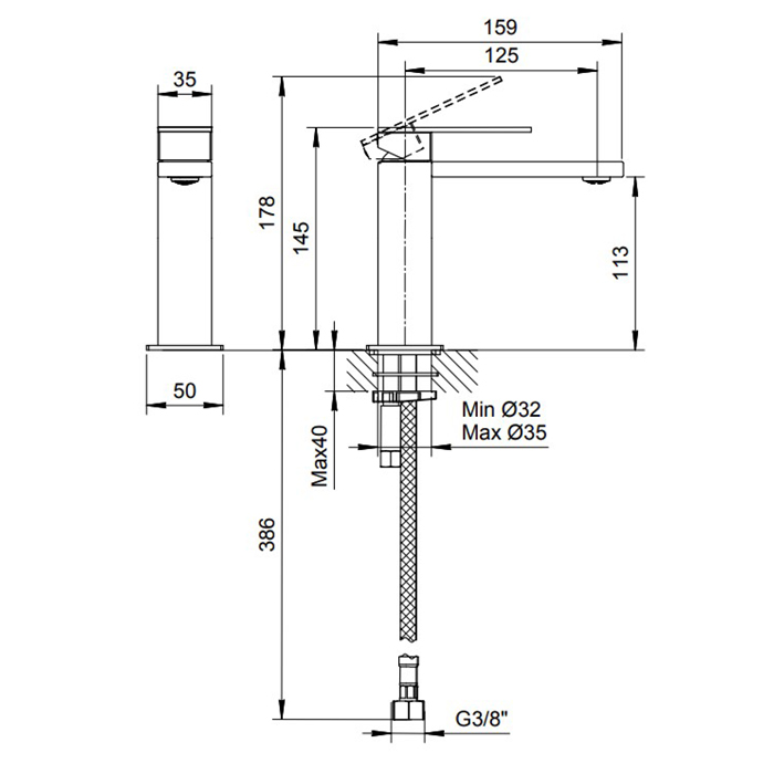 Смеситель для раковины Fantini Mint 34 93 F004WF Нержавейка