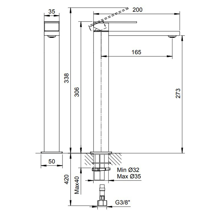 Смеситель для раковины Fantini Mint 34 93 F006WF Нержавейка