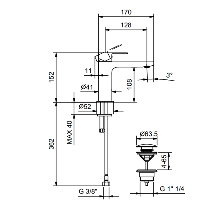 Смеситель для раковины Fantini Myo 61 02 V604F Хром