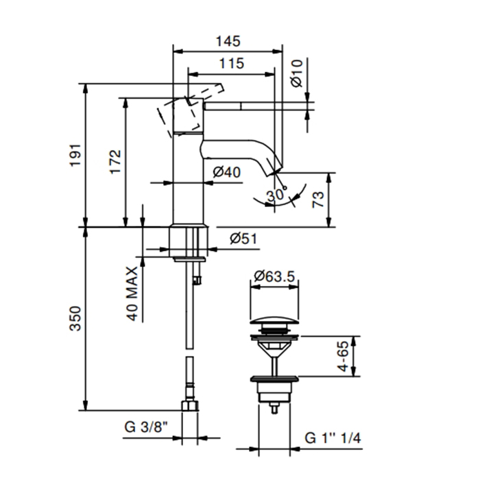 Смеситель для раковины Fantini Nostromo 50 13 E804F Черный матовый Fantini Nostromo Смеситель для раковины, 1 отв., с донным клапаном, излив 115мм, цвет: черный матовый