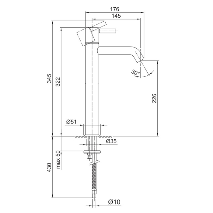 Смеситель для раковины Fantini Nostromo 50 93 E806WF Нержавейка Fantini Nostromo Смеситель для раковины, 1 отв., без донного клапана, излив 145мм, цвет: нержавеющая сталь