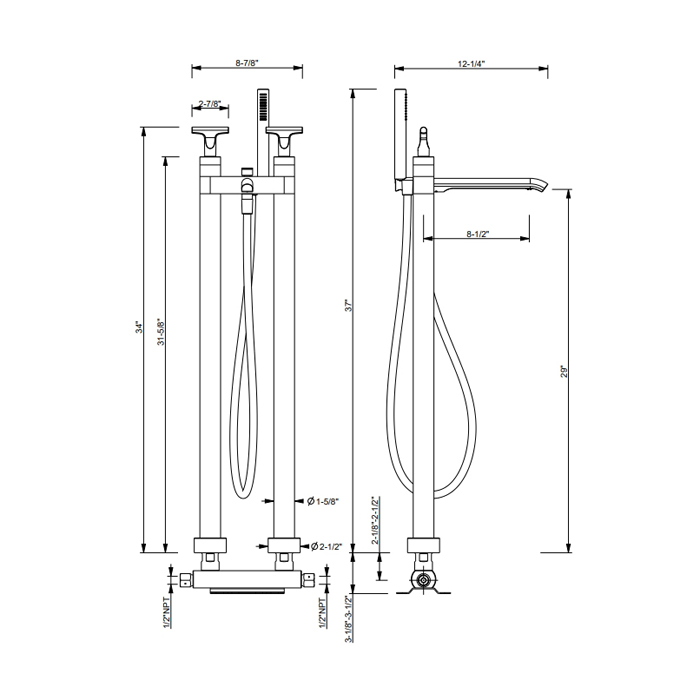Смеситель для раковины Fantini Sailing 67 P5 J080B Gun metal FANTINI SAILING Смеситель для ванны напольный,перекл на 2 потока, ручная лейка, внешняя часть, цвет Matt Gun Metal PVD