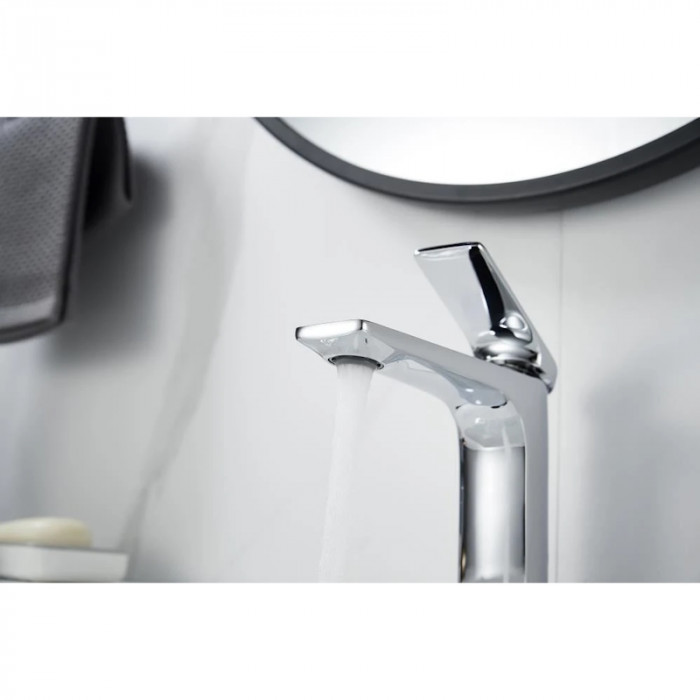 Выглядит стильно, матовый черный не маркий. Ход рычага плавный, напор регулируется точно. Из минусов - тяжёлый, пришлось аккуратно подтягивать крепеж.
