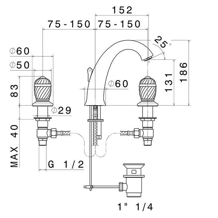 Смеситель для раковины Newform Deluxe 68005.66.019 Золото Newform Deluxe Смеситель для раковины на 3 отверстия (1/2” t piece) с донным клапаном, цвет: gold