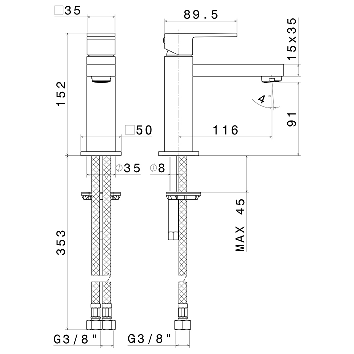 Смеситель для раковины Newform Ergo Q 66412.21.018 Хром Newform Ergo-Q Смеситель для раковины без донного клапана, цвет: хром