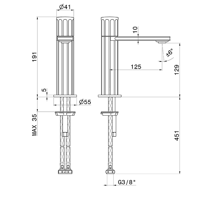 Смеситель для раковины Newform Ionika 72812.59.066 Нержавейка Newform Ionika Смеситель для раковины без донного клапана, цвет: PVD brushed stainless steel