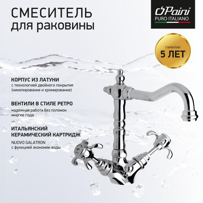 Смеситель для раковины PAINI Ornellaia высокий, хром (CR) 87CR250BLMKM смеситель для раковины Paini Италия
