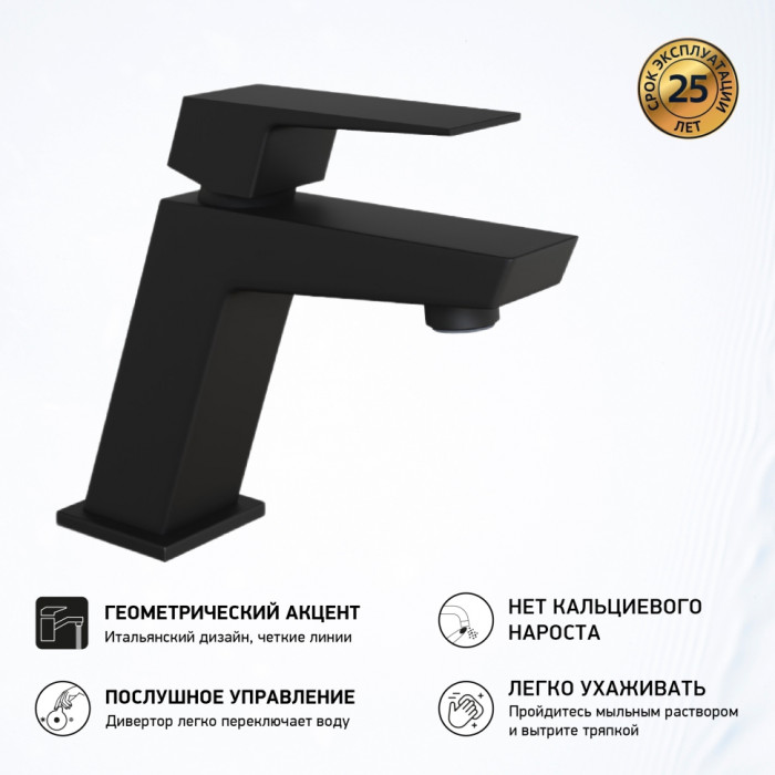 Смеситель для раковины PAINI Torre без донного клапана, черный (YO) 98YO205 смесители для раковины цветные Италия