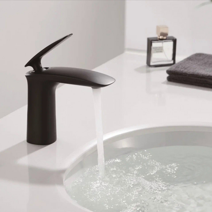 Выглядит стильно, матовый черный не маркий. Ход рычага плавный, напор регулируется точно. Из минусов - тяжёлый, пришлось аккуратно подтягивать крепеж.