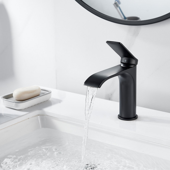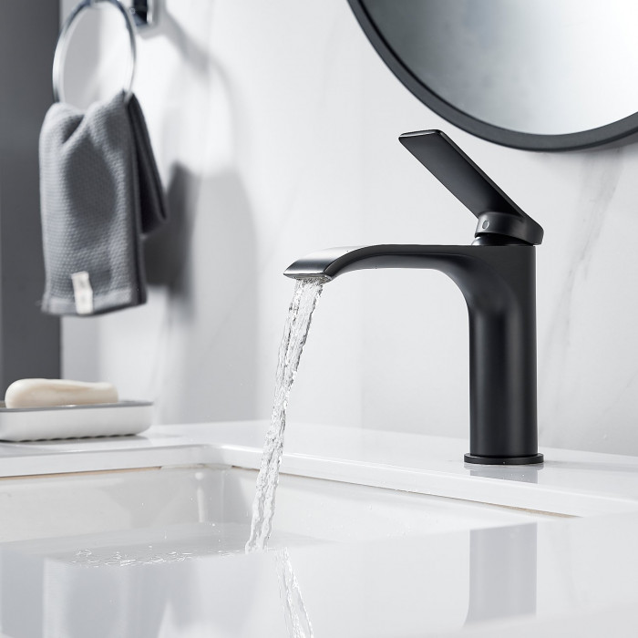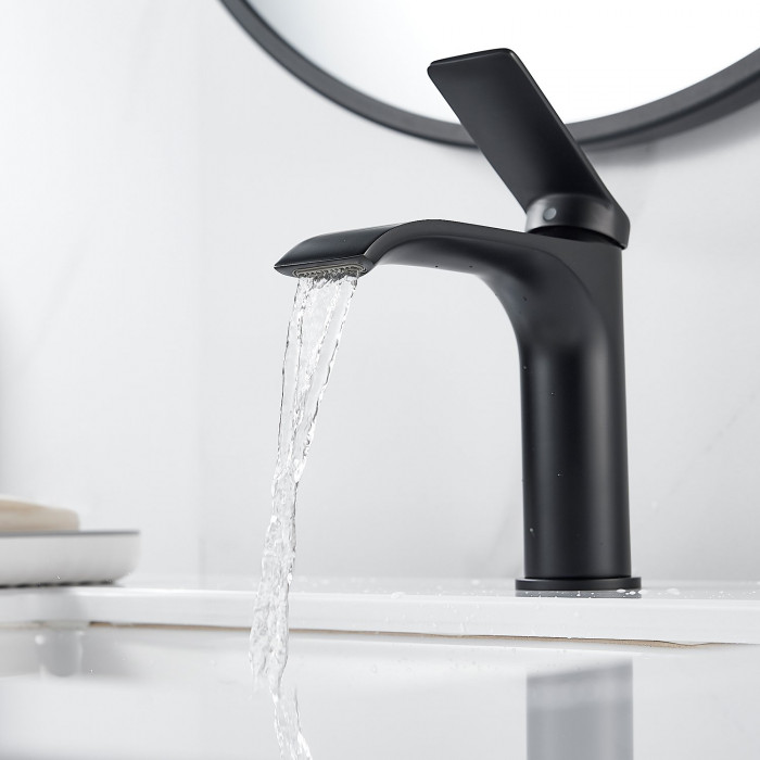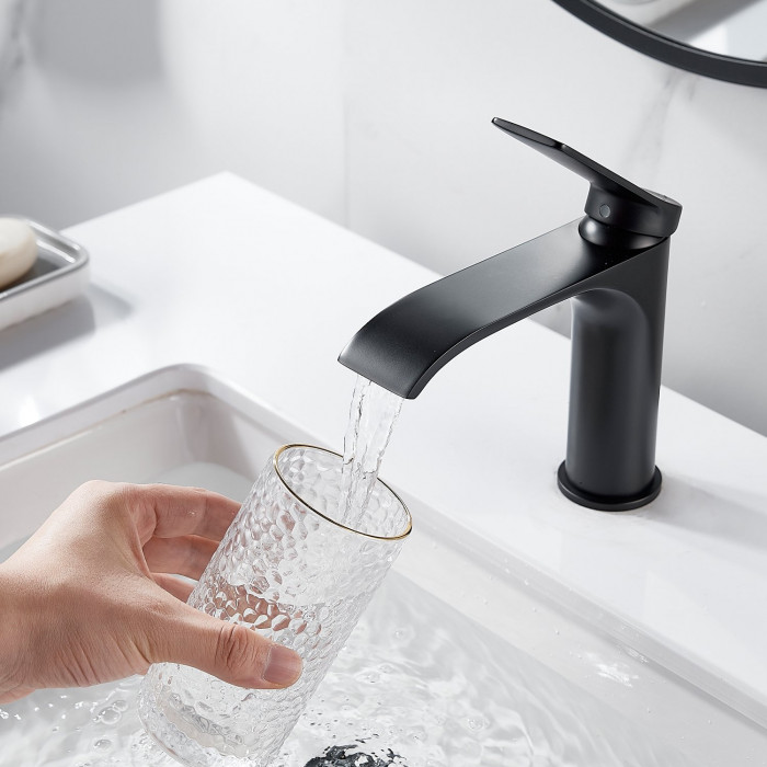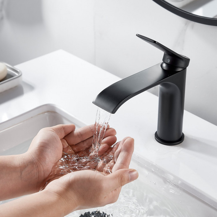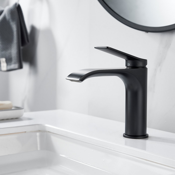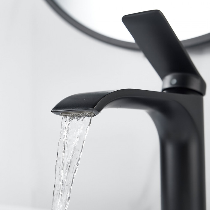 Выглядит стильно, матовый черный не маркий. Ход рычага плавный, напор регулируется точно. Из минусов - тяжёлый, пришлось аккуратно подтягивать крепеж.