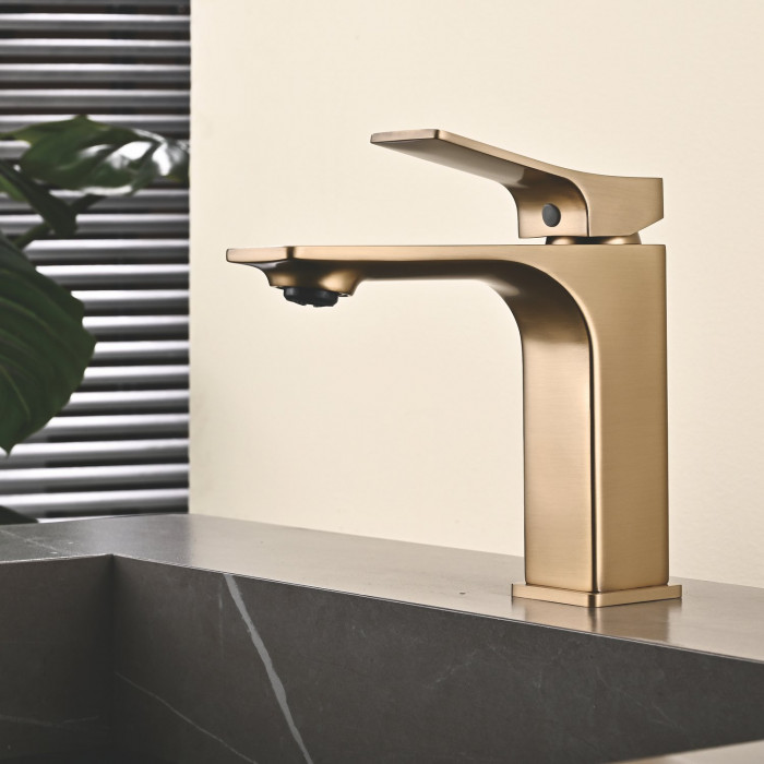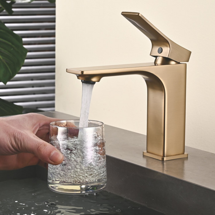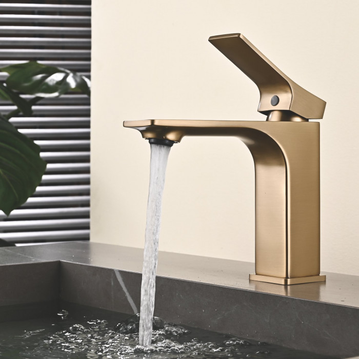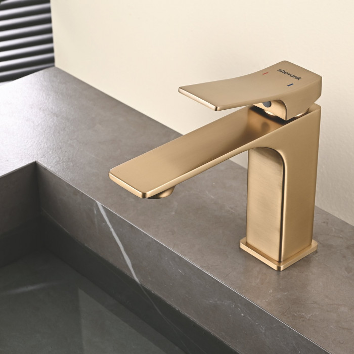 Смеситель для раковины Shevanik S6101G, золотой сатин