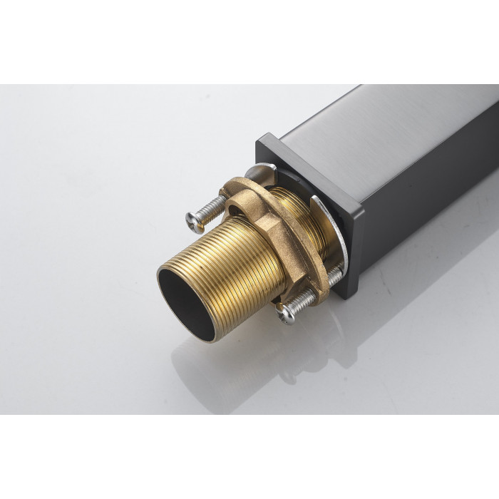 Выглядит стильно, матовый черный не маркий. Ход рычага плавный, напор регулируется точно. Из минусов - тяжёлый, пришлось аккуратно подтягивать крепеж.