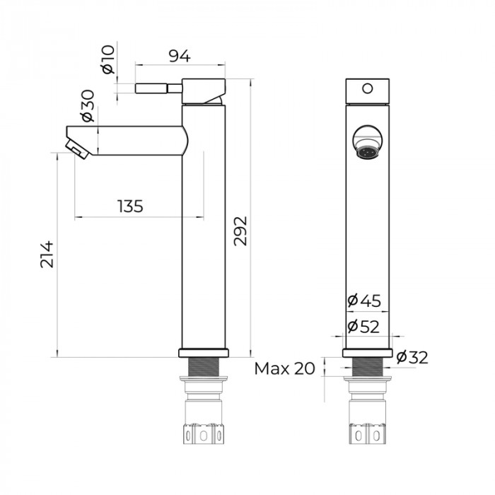 Смеситель для раковины высокий Knotlor SS-04/01, сатин