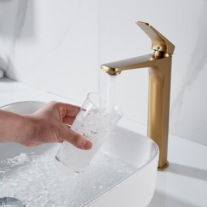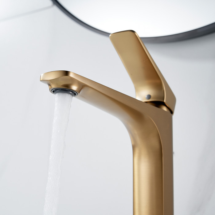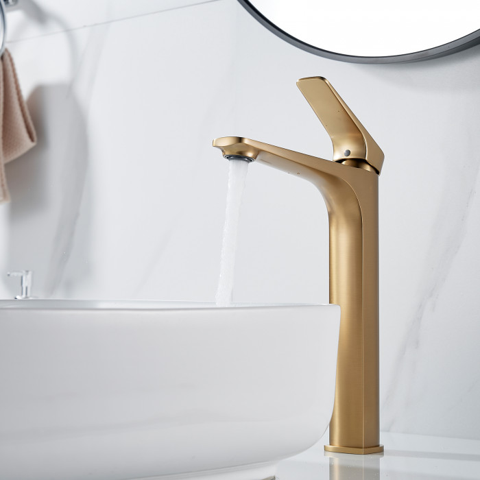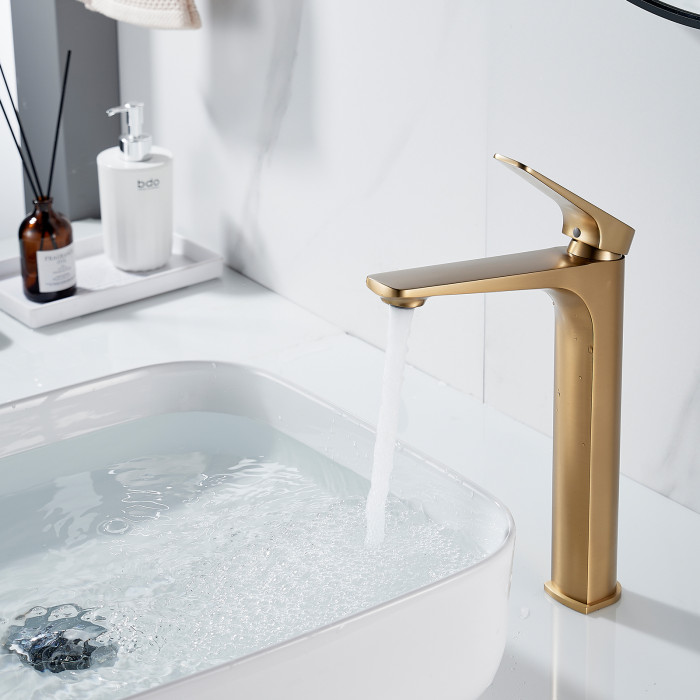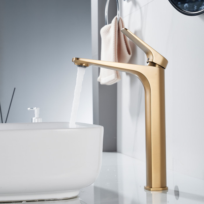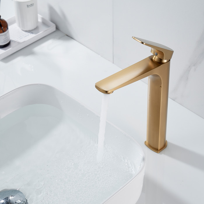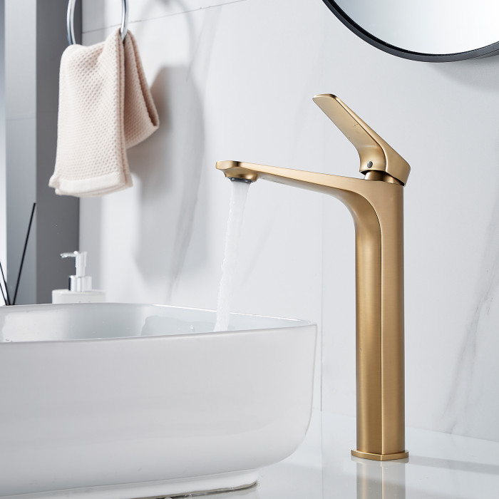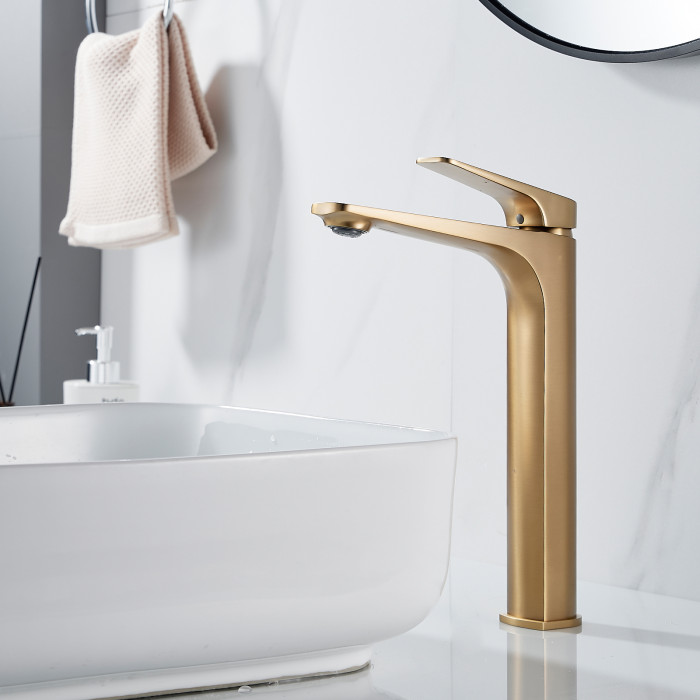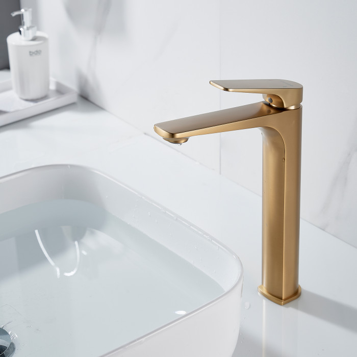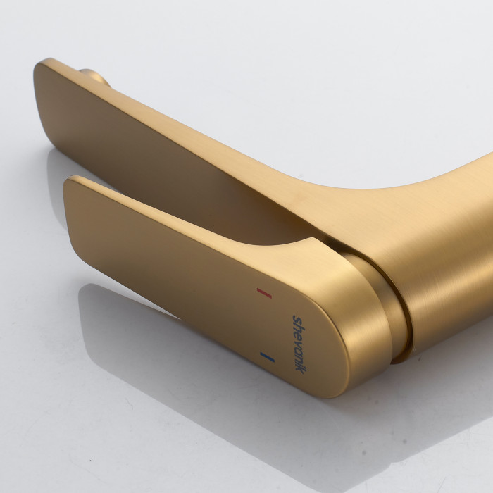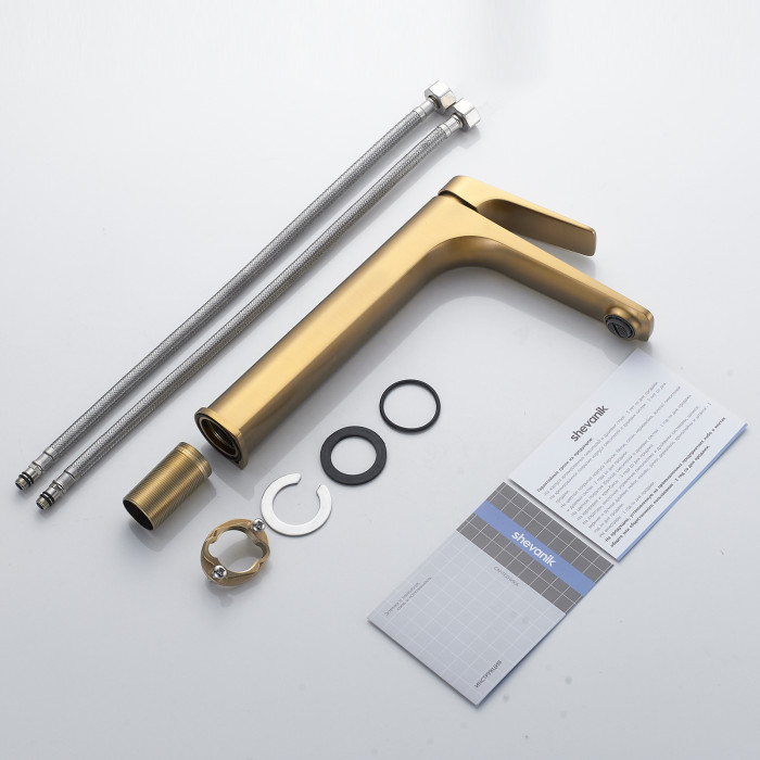 Смеситель для раковины высокий Shevanik S4211G, золотой сатин