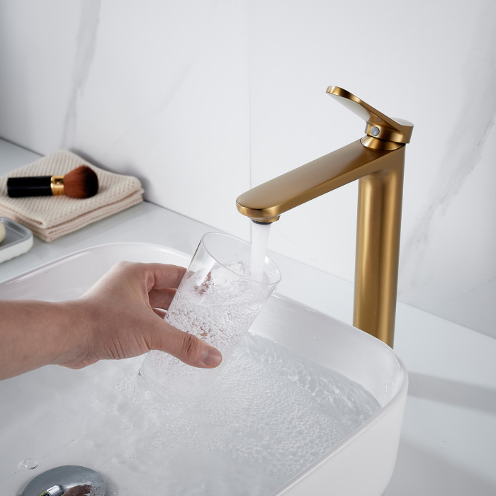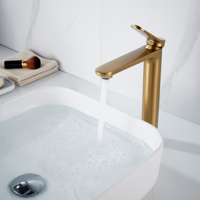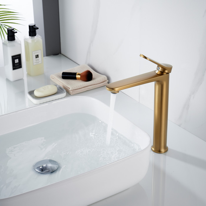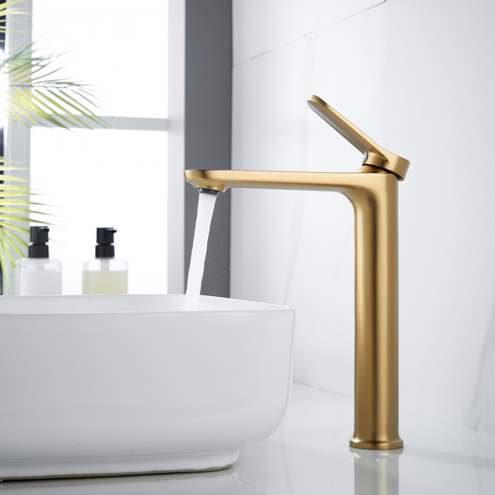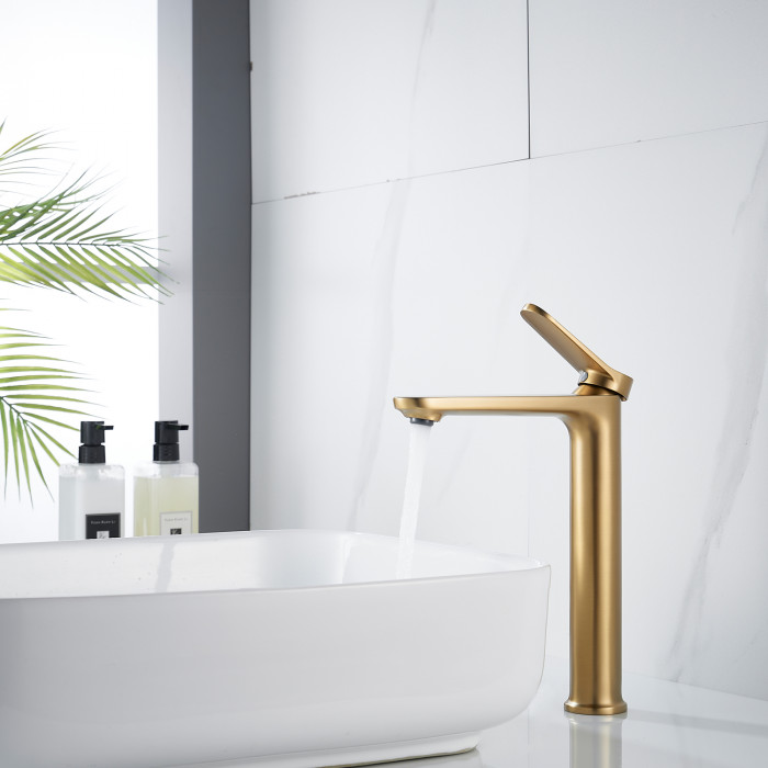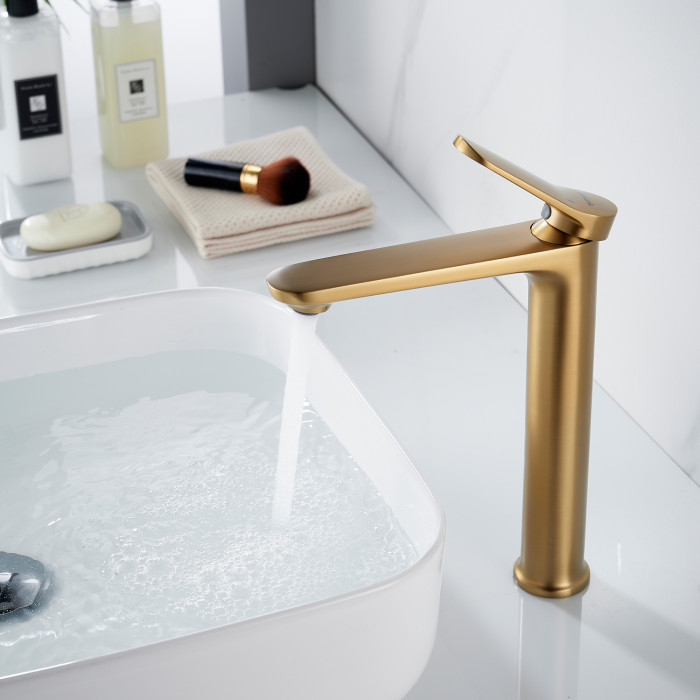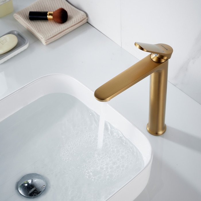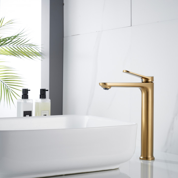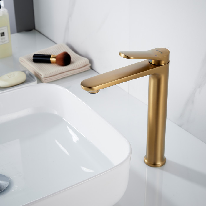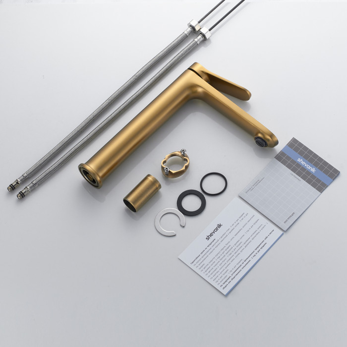 Смеситель для раковины высокий Shevanik S4311G, золотой сатин