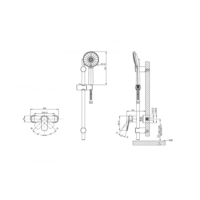 Смеситель для душа ARROW AG3503CP-TZ с душевым гарнитуром и штангой, Хром смеситель латунь 3 нет 3 есть
