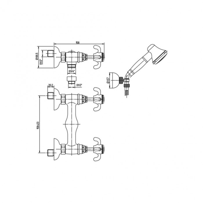 Смеситель для душа PAINI Ornellaia с аксессуаром, хром (CR) 87CR509