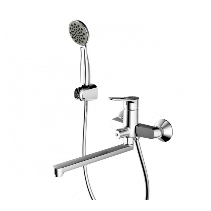 Смеситель для ванны c длинным изливом Bravat Eco-D F693158C-LB Хром Германия Настенный Однорычажный Керамический картридж, Kerox 35 mm Аэратор Neoperl Латунь 1-режимный