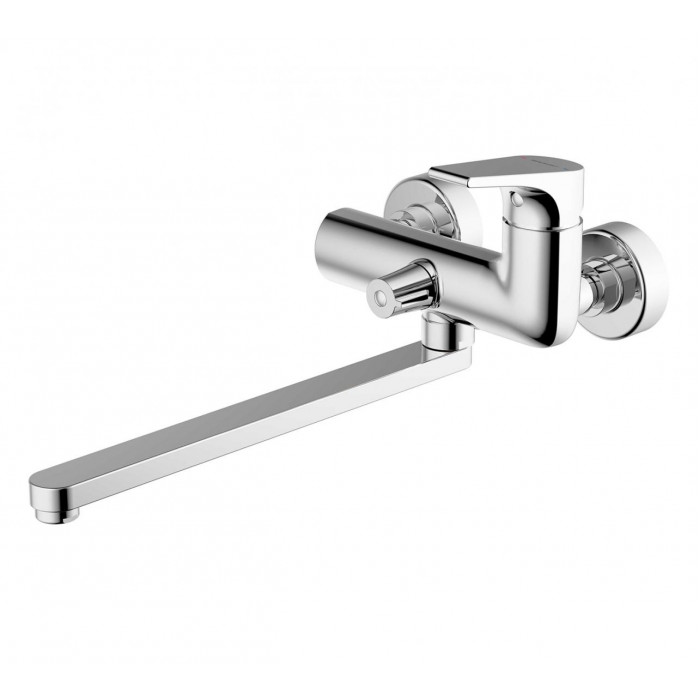 Смеситель для ванны c длинным изливом Bravat Vega F6119177CP-01L Хром Германия Настенный Однорычажный Керамический картридж, Kerox 35 mm Аэратор Neoperl Латунь