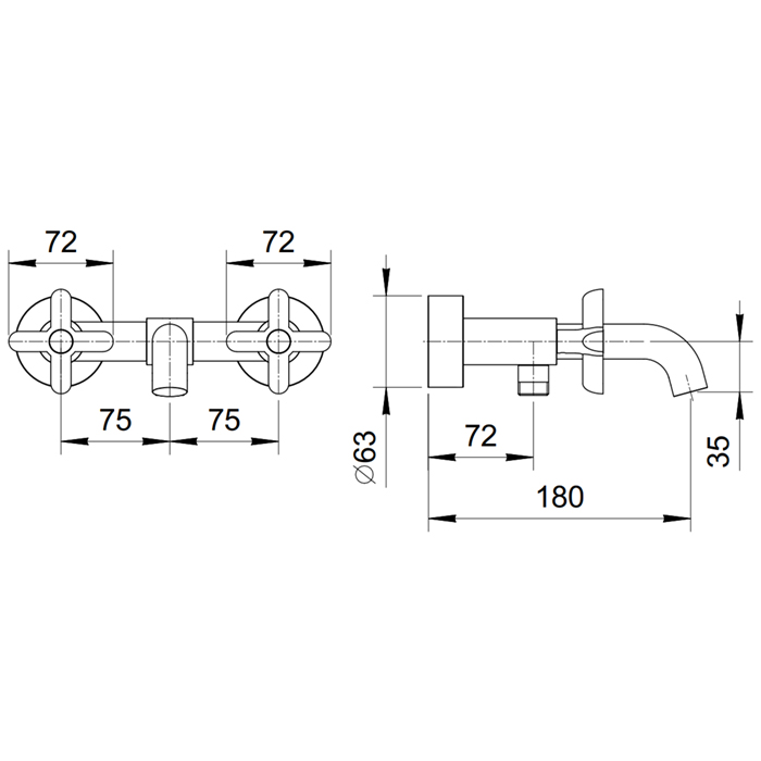 Смеситель для ванны Fantini Icona Classic 53 02 R015 Хром Fantini Icona Classic Смеситель для ванны, настенный, излив 180мм, с ручн.душем, цвет: хром