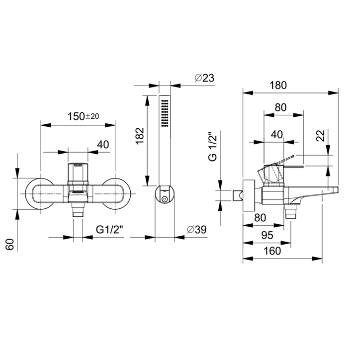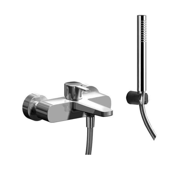 Смеситель для ванны Fantini Lame 24 02 M115 Хром Fantini Lame Смеситель для ванны, настенный, на 2 источника, излив 160мм, с ручн.душем, цвет: хром