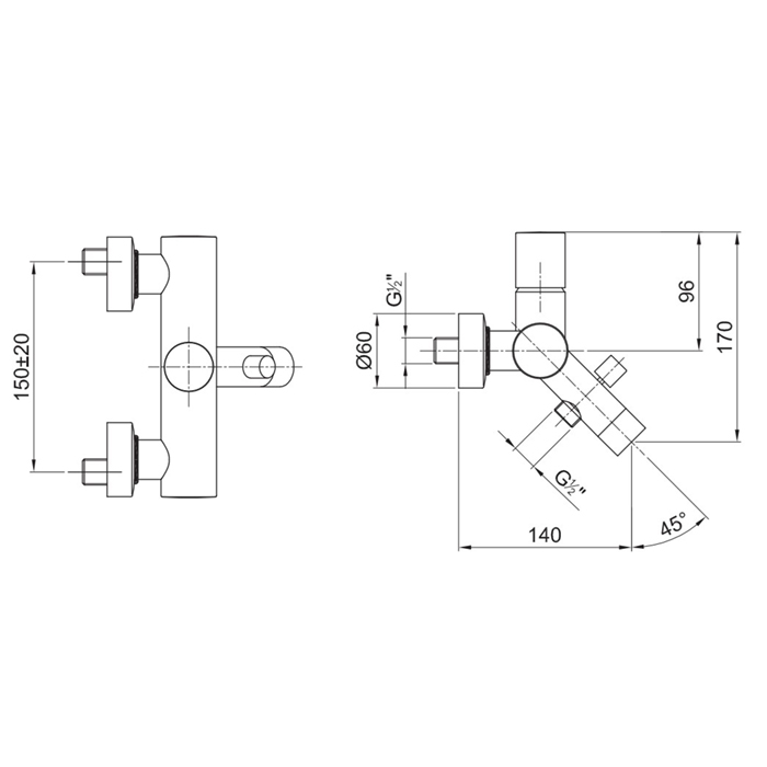 Смеситель для ванны Fantini Nostromo 50 02 1618 Хром Fantini Nostromo Смеситель для ванны, настенный, на 2 источника, излив 140мм, цвет: хром
