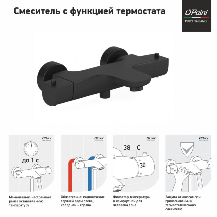 Смеситель для ванны PAINI Nove с термостатом, черный (YO) 09YO111TH смесители для ванны цветные Италия