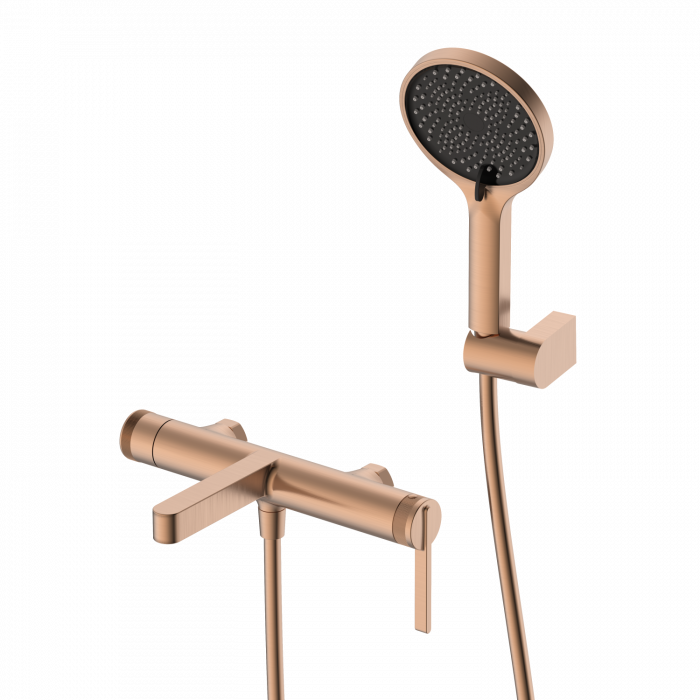 - Душевая трехрежимная лейка и шланг длиной 150 см уже в комплекте. Германия латунь брашированное розовое золото современный керамический картридж настенный 5 лет смеситель, эксцентрики-2шт, декоративная шайба (отражатель)-2шт, шланг душевой 1,5м PVC, лейка душевая 3 режима, держатель душевой лейки, паспорт изделия, брендовый пакет