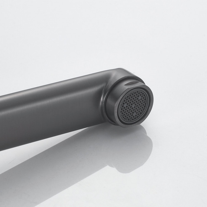 Выглядит стильно, матовый черный не маркий. Ход рычага плавный, напор регулируется точно. Из минусов - тяжёлый, пришлось аккуратно подтягивать крепеж.