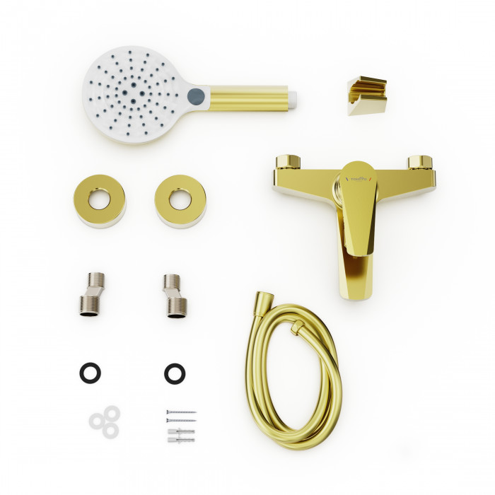 Смеситель для ванны TOKITO KIN брашированное золото (TOK-KIN-1014) Современный смеситель для ванной TOKITO серии KIN создан из прочной, высококачественной латуни. Хромированный корпус крана для ванной не подвержен коррозии. В комплект входят латунные эксцентрики, PVC-шланг (1,5 м), отражатели, душевая лейка 3 режима, держатель лейки. Прочный керамический картридж позволит выдержать любые перепады давления, а аэратор ABS HoneyComb позволит сократить количество потребляемой воды. Универсальный смеситель с поворотным керамическим переключателем от компании TOKITO - лучшее решение для ценителей практичной, многофункциональной и стильной сантехники. Лаконичный смеситель будет радовать вас своим ослепительным блеском на протяжении всего срока службы. Модели серии KIN прекрасно подойдут для просторных и маленьких ванных комнат в современном стиле. Бренд TOKITO - это уникальное сочетание легендарного японского качества и утонченных мягких линий. Благодаря современным технологиям и безопасным материалам, сантехнические изделия имеют увеличенный срок службы. Япония смеситель для ванны латунь