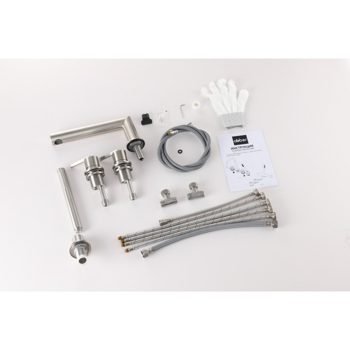 Смеситель ABBER Perfekte 316 AF8A13BST на борт ванны с лейкой, сталь брашированная Германия 5 лет