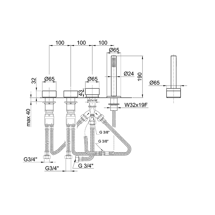 Смеситель для ванны Fantini AF/21 27 93 A267 Матовая сталь Fantini AF/21 Смеситель на борт ванны, 4 отв., без излива, цвет: матовая натуральная сталь