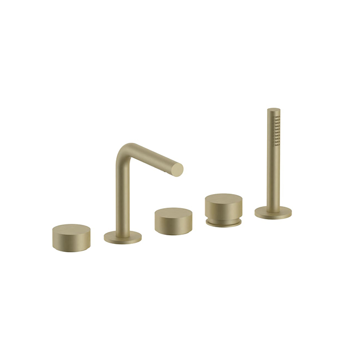 Смеситель для ванны Fantini AF/21 27 P6 A265 Золото Fantini AF/21 Смеситель на борт ванны, 5 отв., с ручн душем, излив 155мм, цвет: Matt British Gold PVD