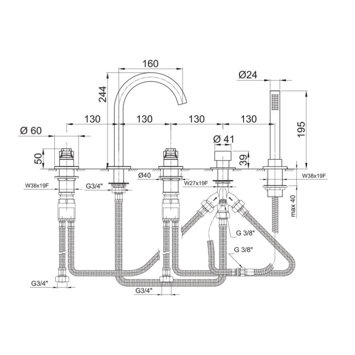 Смеситель для ванны Fantini AL/23 26 02 B265 Хром Fantini AL/23 Смеситель на борт ванны, 5 отв., излив 160мм, цвет: хром