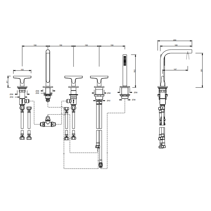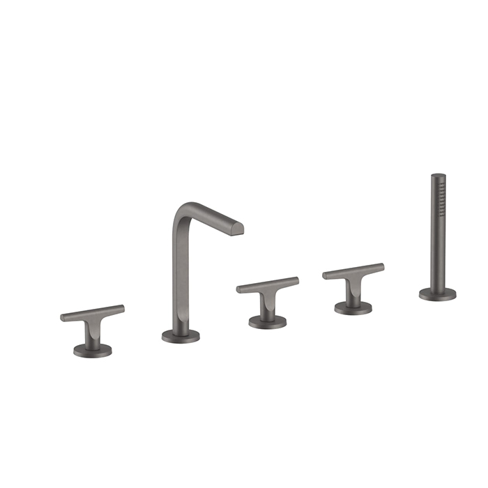 Смеситель для ванны Fantini Sailing 67 P5 J065 Gun metal FANTINI SAILING Смеситель для установки на борт ванны на 5 отверстий, с изливом, ручным душем и шлангом 1500 мм., цвет Matt Gun Metal PVD