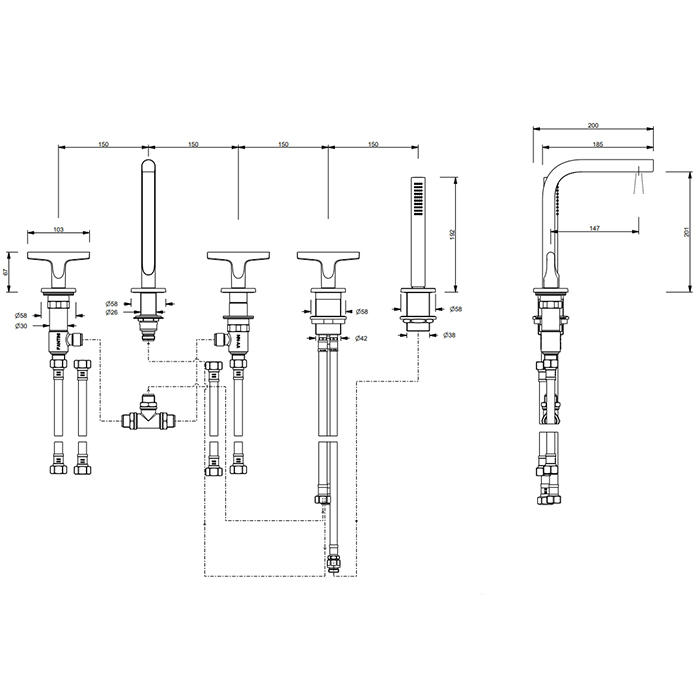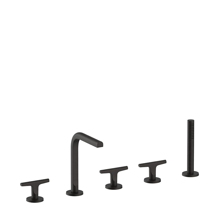 Смеситель для ванны Fantini Sailing 67 S1 J065 Черный матовый FANTINI SAILING Смеситель для установки на борт ванны на 5 отверстий, с изливом, ручным душем и шлангом 1500 мм., цвет Deep Black PVD