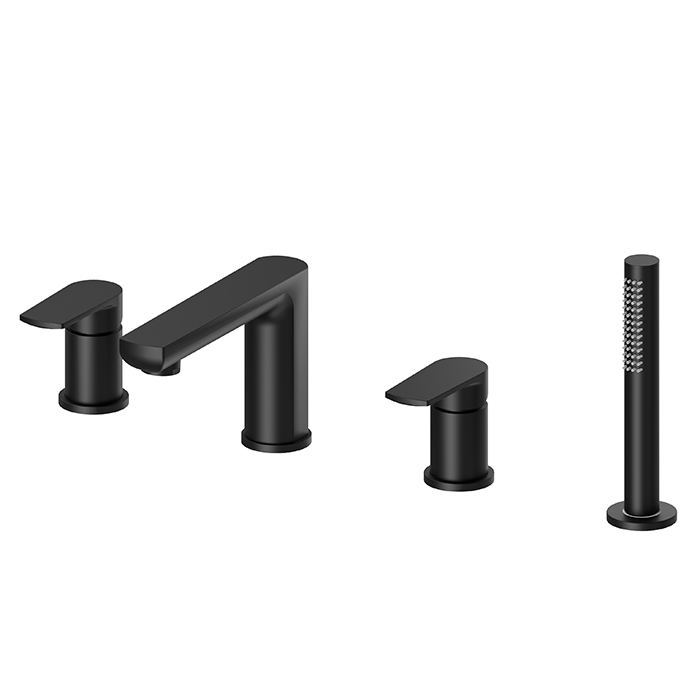 Смеситель для ванны Newform Haka 72082C.01.093 Черный матовый Newform Haka Смеситель на борт ванны на 4 отверстия, с ручным душем, изливом и переключателем, цвет: черный матовый