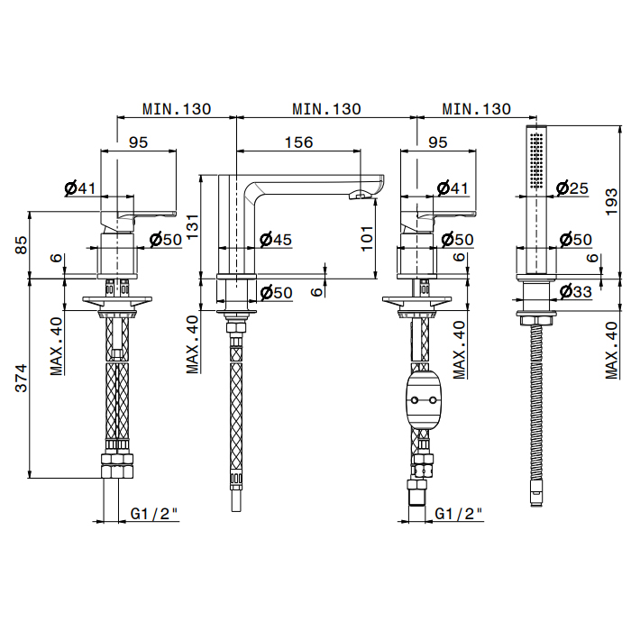 Смеситель для ванны Newform Haka 72082C.59.066 Нержавейка