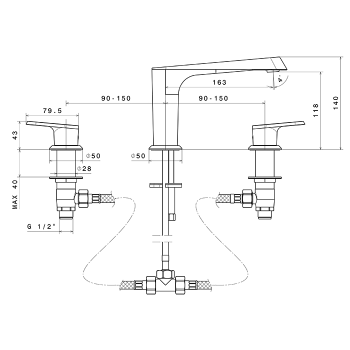 Смеситель для ванны Newform Nio 68900.01.093 Черный матовый Newform Nio Смеситель для ванны на 3 отверстия (1/2” t piece) без донного клапана, цвет: черный матовый